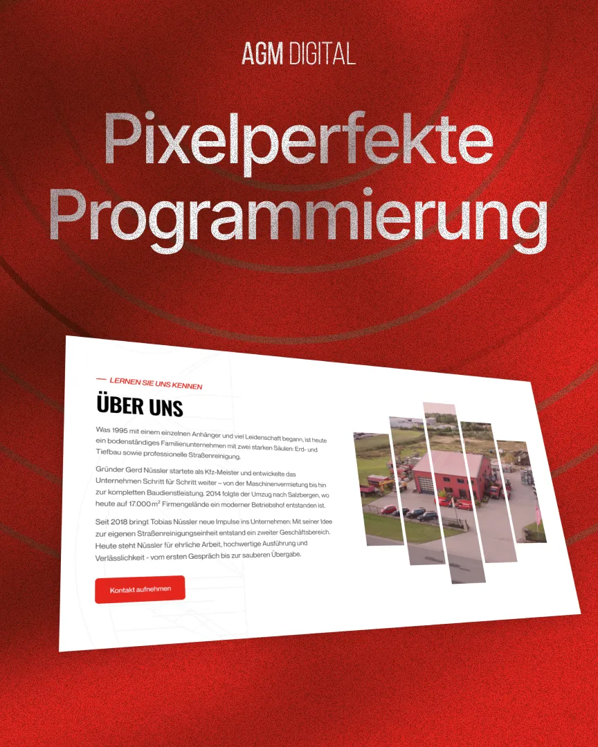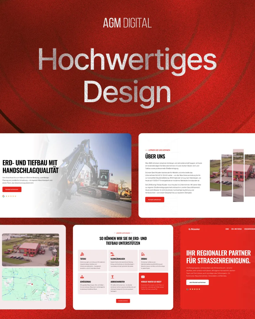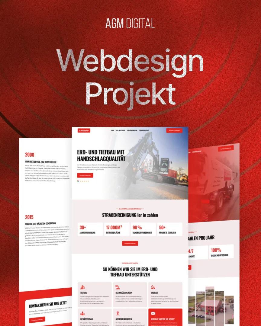 Bei Tiefbau Nüssler war genau dieser Punkt ausschlaggebend: Die bestehende Webseite entsprach optisch und strukturell nicht mehr dem heutigen Anspruch des Unternehmens.